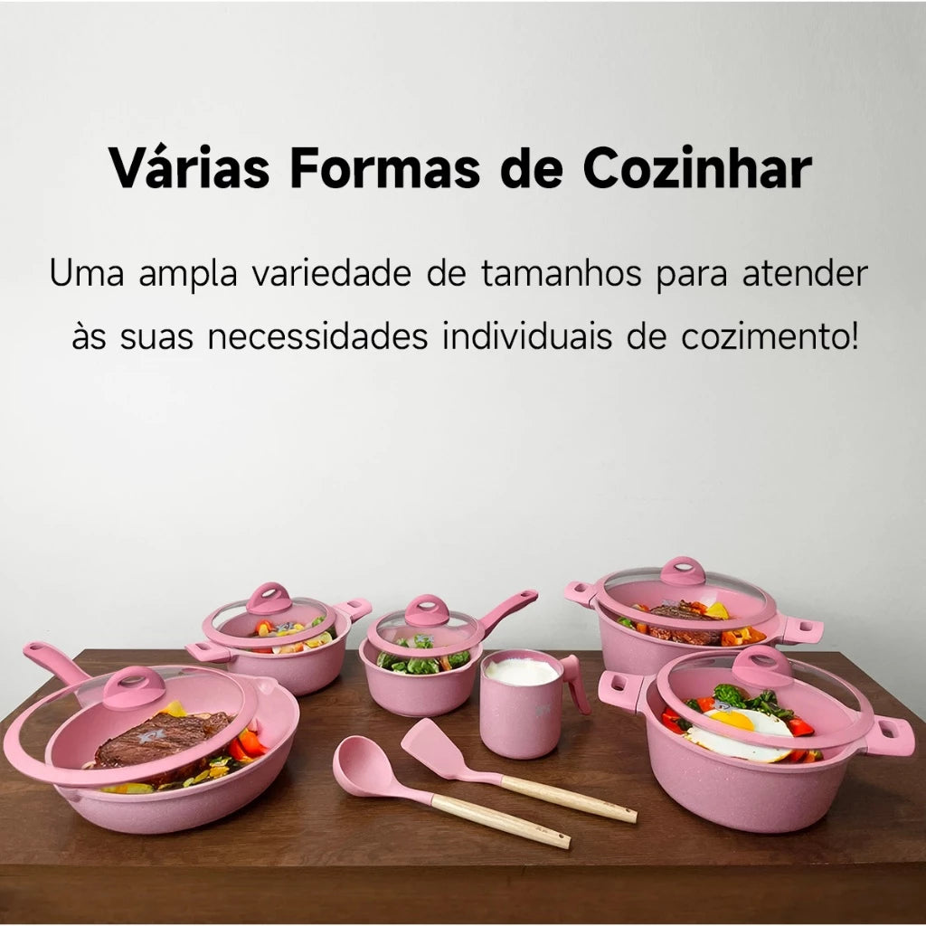 conjunto de panela 14 peças pink